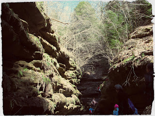 I still remember entire weekends spent camping and hiking across state parks from my own childhood. They're some of my fondest memories...and I'm going to go ahead and allow for the fact that I've completely blocked any arguing from my memory...ditto crying and/or whining that occurred in the car before and after the hiking trips...ditto any falls or spills that at the time were surely tragic in the extreme. This gives me hope. This tells me that, surely, The Munchkins will gloss over the rough edges of some of our more adventurous weekends and look back fondly on these excursions; blocking from their memory the whining and crying and arguing over the last chocolate chip cookie on the car ride home.